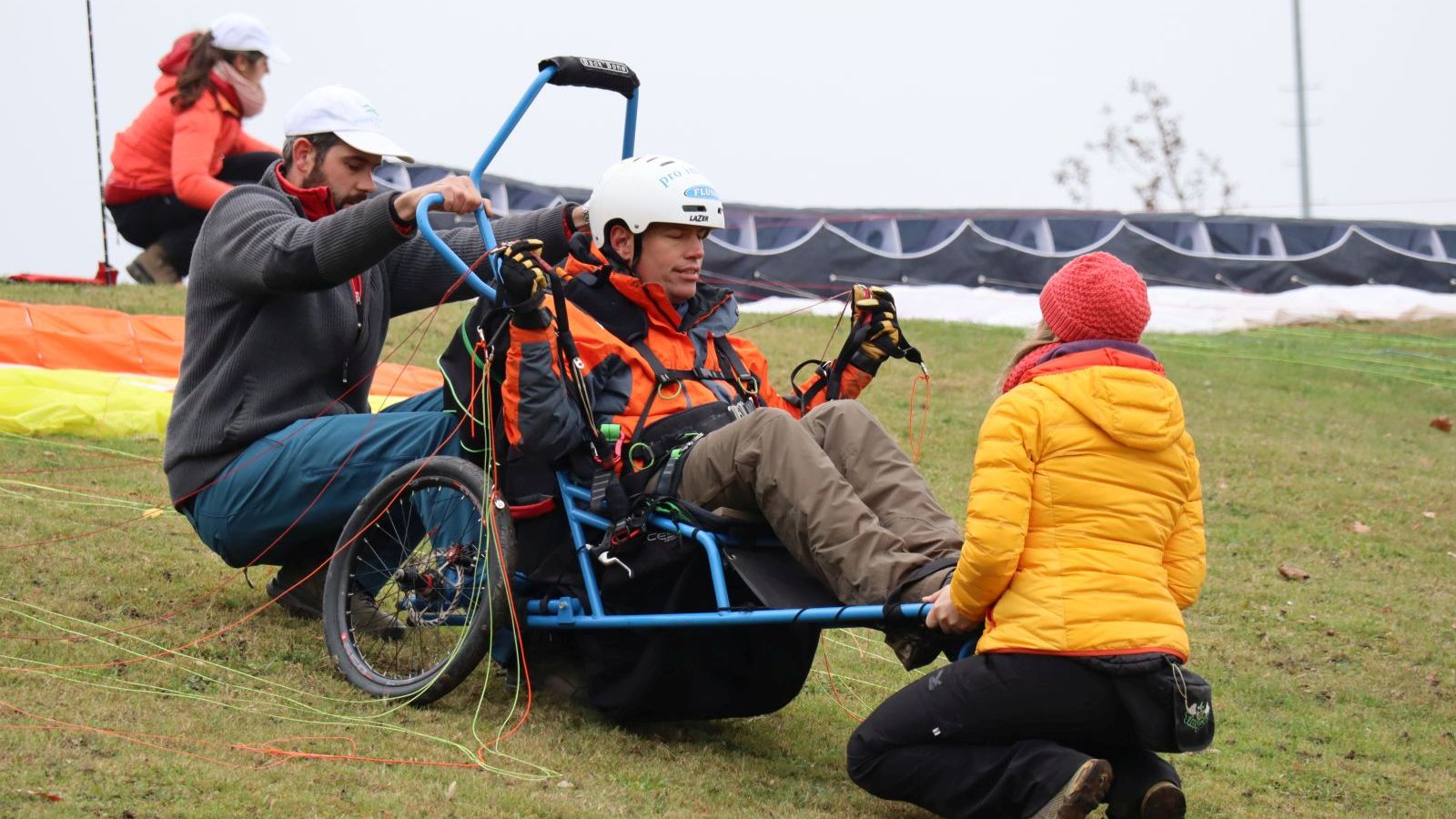 Nebel und Kälte hielten uns nicht davon ab, in Zusammenarbeit mit der FLUSO Gleitschirmschule den Schnuppertag für Rollstuhl-Fahrer durchzuführen.