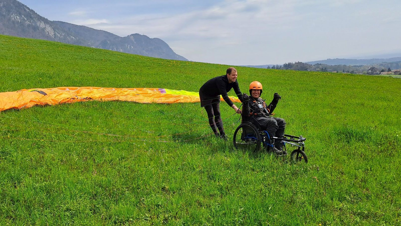 Dabei fanden nebst regulärem Schnuppertag und Grundkurs auch eine von Wings for People geleitete Einweisung für neue Helfer statt. Yves stellte sich als aktiver Rollstuhl-Flugschüler zur Verfügung, damit neue Helfer am Übungshang im Umgang mit Rollstuhlfahrern und dem Fliegen im Rollstuhl eingewiesen werden konnten. Dabei profitierte er selbst davon, dass er nach der langen Winterpause einige Aufziehübungen machen konnte und dabei stets beim Transport und den Startvorbereitungen unterstützt wurde. An diesem wechselhaften Tag konnten wir mit etwas Glück bei trockenen Bedingungen rund sieben Startläufe durchführen und dabei zwei neue Helfer für Wings for People ausbilden. Auch Claude, Mitglied von Wings for People, welcher nicht mehr aktiv als Helfer agiert, unterstützte tatkräftig, mit viel Elan und erhielt wieder einmal einen Einblick in die Tätigkeit des Vereins.